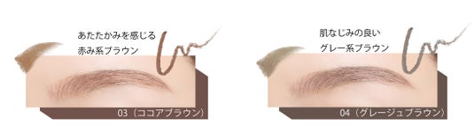 ・均一にふわっと軽くのび広がり、綺麗な濃淡がつくれるシルキー処方を採用。しっとりとした使用感でなめらかに肌に密着し、美眉をキープ。