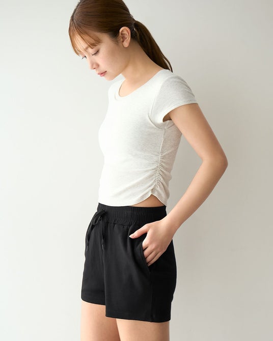 今回発売する「ガードル イン リブショートパンツ」は、補正ガードルが内蔵された新開発のガードルインパンツです。リラックスウェアとしてはもちろん、少し外出したい時にワンマイルウェアとしてもご着用いただけます。