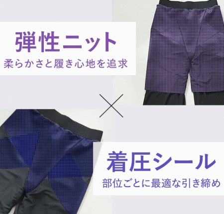柔らかさと履き心地を追求した「弾性ニット」と、部位ごとに最適な引き締めを実現する「着圧シール」を組み合わせた内部構造により、長時間履いても快適で、履くだけで理想のボディラインが叶う新しい選択肢を提案します。