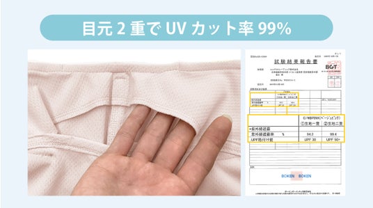 目元2重部分はでUVカット率99.4%で一番焼けやすい頬の上部をしっかりカバーします。