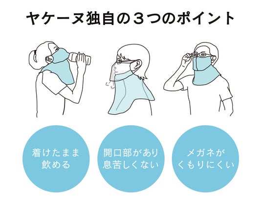「ヤケーヌ爽クール」は、クーリング素材を採用し、水で濡らしたり、着用時の汗が蒸発する際の気化熱により、ひんやりとした涼感を得られるのが特長です。日差しが強まり始める春の行楽シーズンから真夏の屋外活動まで、紫外線対策と同時に暑さ対策も求められる中、1枚で両方をサポートするUVカットフェイスカバーとして需要が拡大しています。