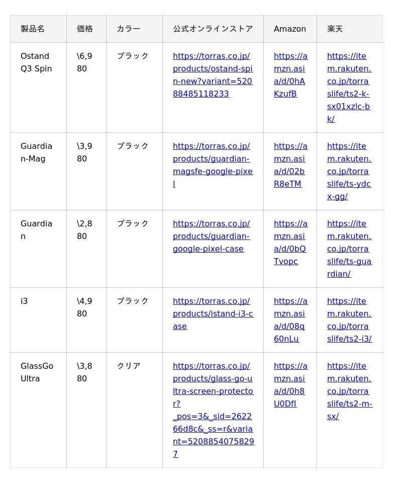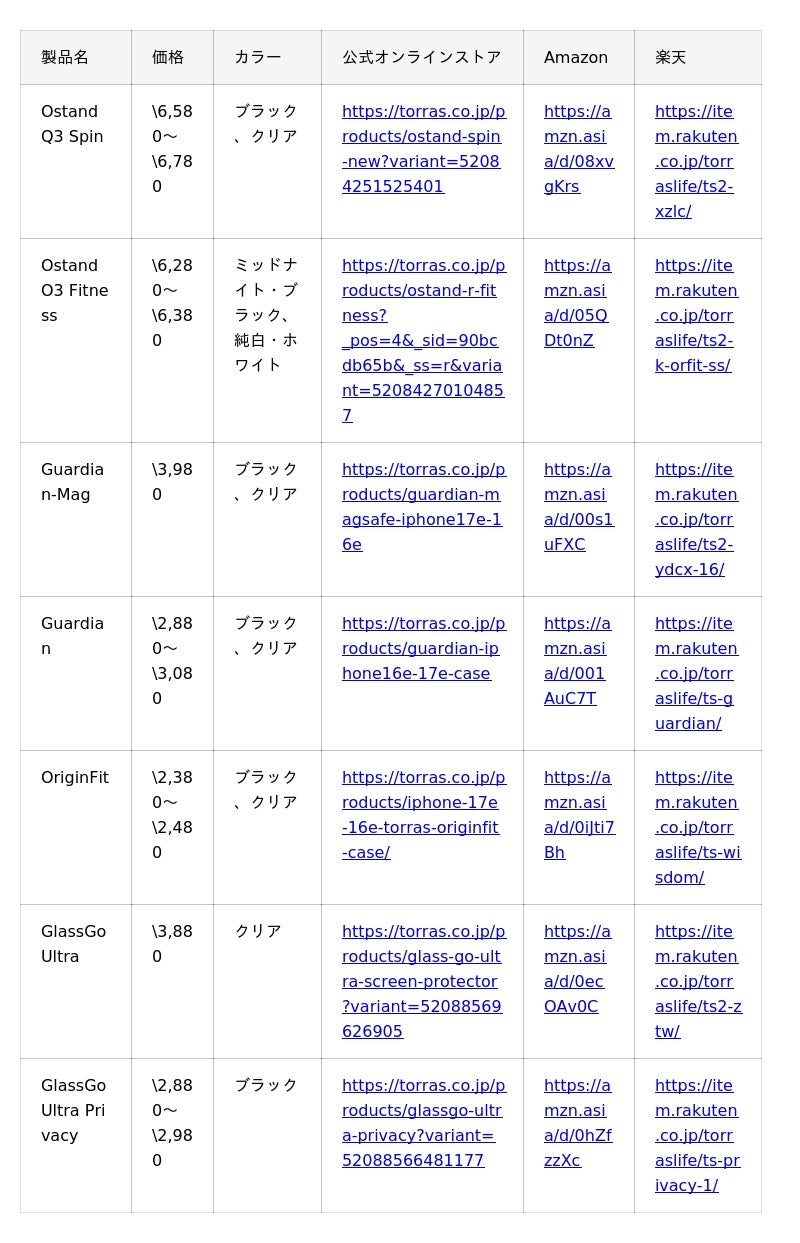 ・Amazon:https://www.amazon.co.jp/torras