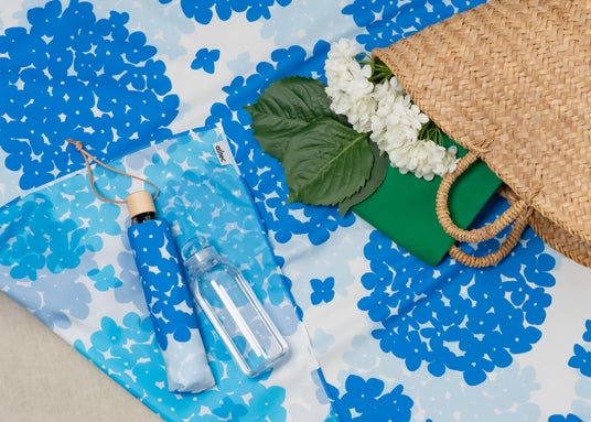 第2弾となる「Reverse AJISAI & HIMAWARI」はアジサイとヒマワリをモチーフとした華やかな柄です。アイテムは晴雨兼用長傘19,800円(税込)、mini(折りたたみ傘)19,030円(税込)、マルチクロス4,950円(税込)の3種類でいずれも耐久撥水加工と紫外線防止加工が施されています。