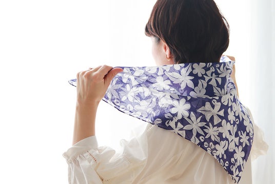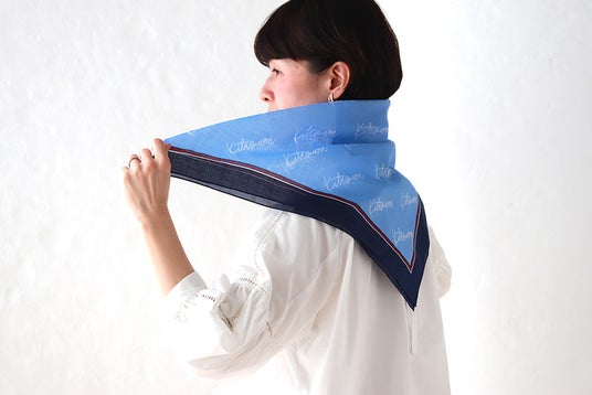 見た目は上品でシンプルなネッカチーフ。しかし実は、内側に保冷剤を収納できるポケットを備えた、機能性ハンカチです。