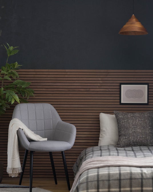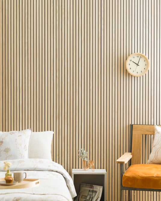 スリットの表面には薄くスライスした天然木が貼り付けられており、高級感のある印象を与えます。素材はホワイトオークとウォールナットの2種類。本物の天然木ならではの上質な質感が、SNSでのルームツアーやDIY投稿で反響を呼びました。