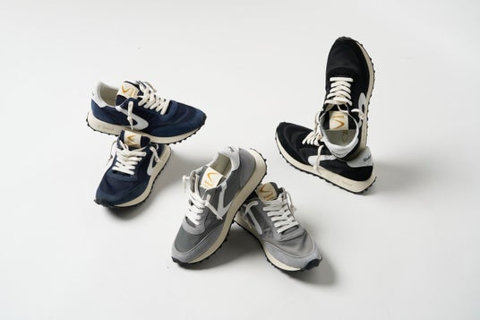 ヴィンテージスニーカーを思わせるクラシックな佇まいと洗練されたデザイン性を兼ね備え、スタイリングに自然に馴染むファッションアイテムとして展開されています。