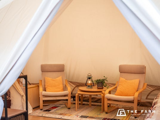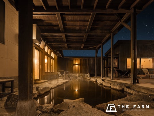 農園リゾートTHE FARMは、関東最大級のグランピング施設をはじめ、近年メディアでも話題のナイトいちご狩りが楽しめる「THE FARM 星空いちご園」、天然温泉とサウナを備えた「おふろcafe かりんの湯」などを有する複合型リゾート施設です。