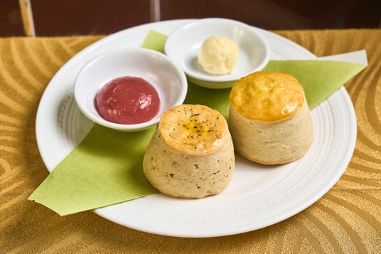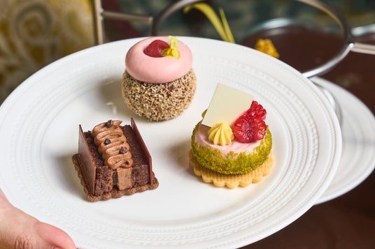 バンケットシェフ片山泰宏によるセイヴォリーでは、香ばしいほうじ茶の風味を纏ったクリームチーズと、スモークサーモンの旨味が調和する「スモークサーモンのキッシュ ほうじ茶風味クリームチーズ」をはじめ、新緑の季節に楽しみたい爽やかな日本茶と相性に良い「コーンムースとセラーノハム」などをご用意。多彩なティーセレクションとのペアリングを意識した、味わい豊かなラインナップをお楽しみいただけます。