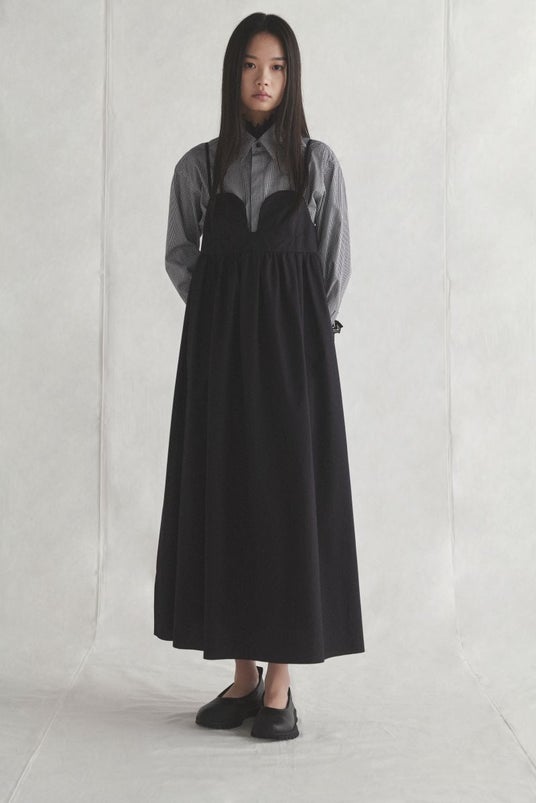 胸元のカッティングが印象的なブロードのドレスや肩を落としたボリュームスリーブのブラウスなど、クラシカルな空気の中に差し込まれる、わずかなズレや違和感を表現したコレクションとなっています。