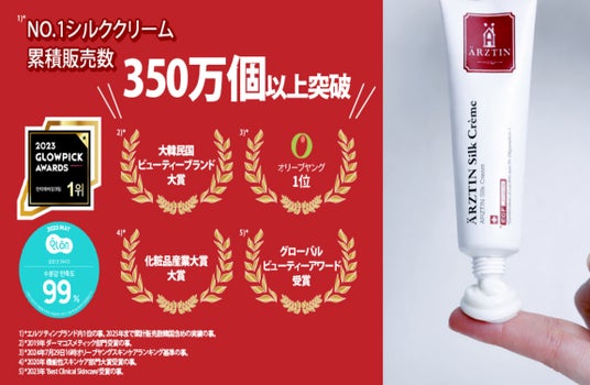 そうして、エルツテインの看板商品「シルククリーム(50g)」が日韓累計販売数350万個を突破!美容医療大国・韓国の大型クリニック「アビジュークリニック」の知見を結集した独自処方で、揺るぎない支持を獲得。 韓国発のハイエンド・メディカルスキンケアブランド**『エルツティン(ARZTIN)』を展開する株式会社エルツティンジャパンは、ブランド内人気No.1を誇る「シルククリーム(50g)」が、2025年までの累計販売数(韓国販売含め)において350万個**(※1)を突破したことをお知らせ。
