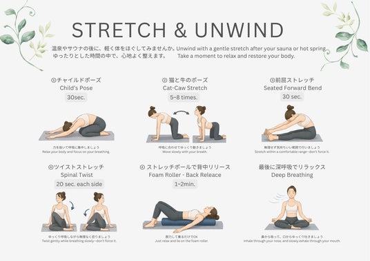 非日常の滞在の中で、自分自身のコンディションに静かに向き合うひととき。身体を動かして整える時間と、温泉でほどけていく時間。その両方を行き来することで、滞在はより深く、心地よいものへと変わっていきます。