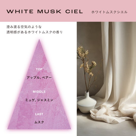 香り : ホワイトムスクシエル/ホワイトティーアリア/セレニティサボン/ブラックアンバー