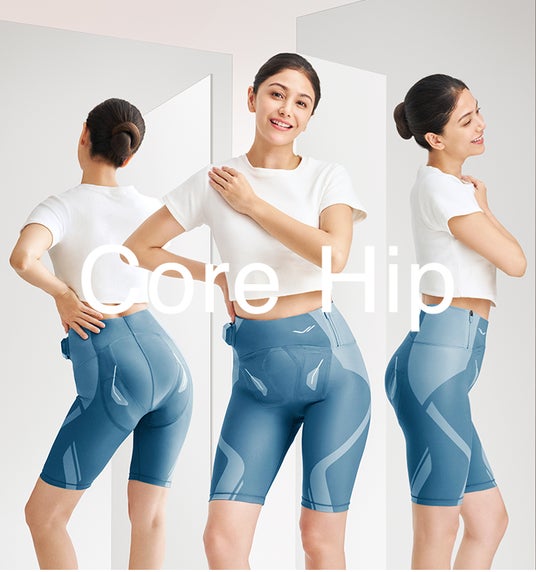 「Core Hip」は、姿勢や歩き方、下っ腹やお尻などのボディラインや、骨盤まわりの不安にも深く関わる「腹直筋下部」 「腸腰筋」 「大臀筋」「骨盤底筋」の4つの部位に同時にアプローチするEMSです。はくことで、鍛えづらい下腹からお尻まわりをEMSによって同時に、効率的に鍛えます。