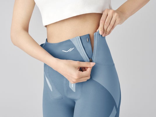 これまでのSIXPADのEMS製品に比較して、電極に厚みがあるのが特徴です。この厚みによってどんな姿勢でもしっかりと筋肉に刺激が届く設計にしました。また、ハイウエストで裾の長いデザインにすることで、着用時のフィット感を向上しました。