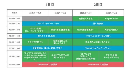 ステージプログラムの一部は交流会企画とも連動しており、Youth Pride全体で同世代の仲間と出会い、つながるきっかけとなる構成としています。