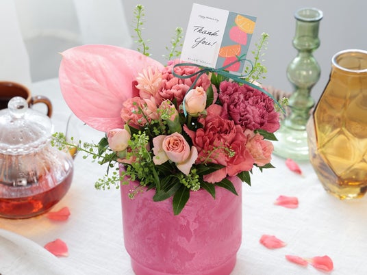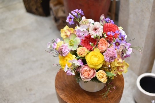 カラフルなアレンジメント。 〈Bubu〉生花アレンジメント 13,200円 ※5月7日(木)までの販売 ■6階 アンドリブウェルスタジオ〈Bubu〉コーナー