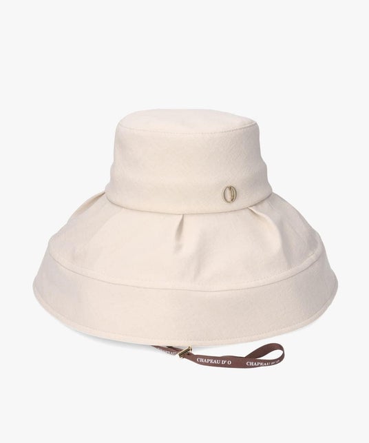 ツバ全体に入れた一級遮光芯と広ツバで、お顔周りから首までを日除けできる帽子。 〈シャポードオー〉帽子 17,600円 ■1階 婦人洋品売場