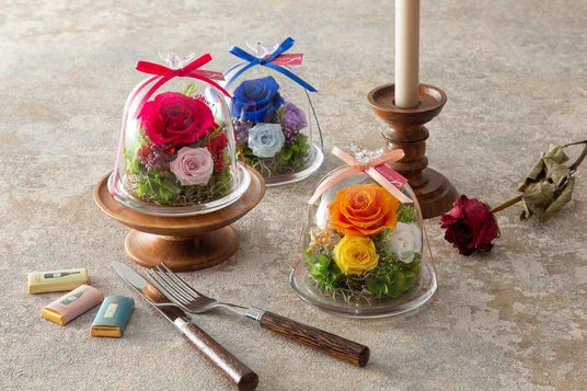 明るいカラーで空間を彩ります。希望や幸福を象徴する鳥のオブジェがトップについて、特別な贈り物におすすめ。 〈パレフローラ〉 プリザーブドフラワー バードドーム(約12.5×12.5×高さ14.0cm/ピンク・オレンジ・ブルー)各11,000円 ■7階 インテリアアクセサリー