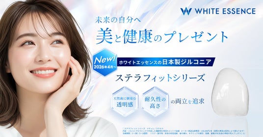 歯のホワイトニングや歯のクリーニングなどのサービス※1を全国の加盟歯科医院で提供するホワイトエッセンス株式会社(代表取締役:入山 裕左、所在地:東京都渋谷区、以下「ホワイトエッセンス」)は、2026 年4 月21日(火)より、日本製ジルコニアによる詰め物/被せ物「ステラフィットシリーズ(Stella Fit Series)」を全国の加盟院を通じて本格的に展開いたします。※2