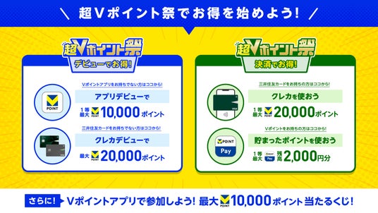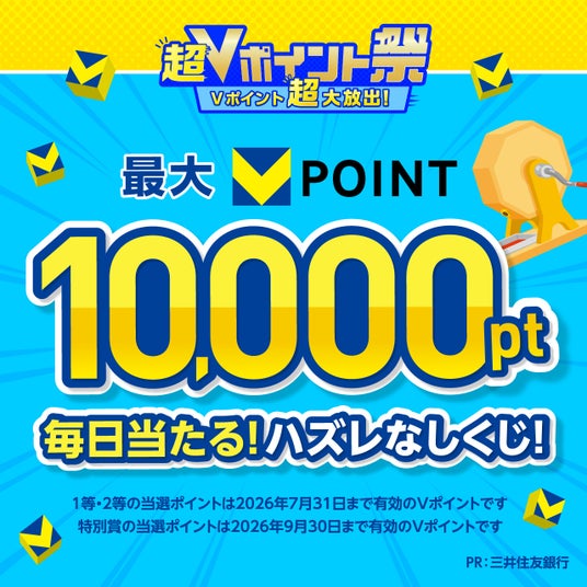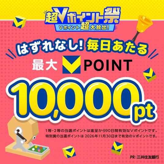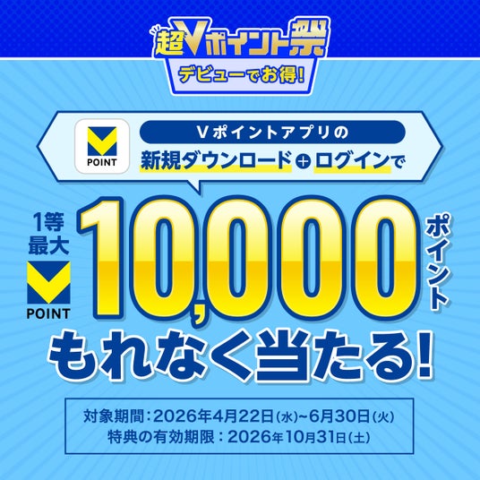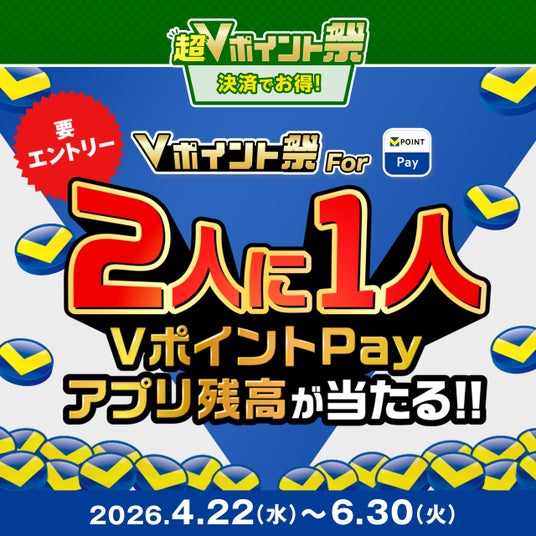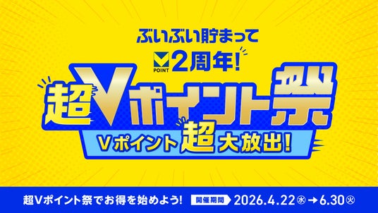 Vポイントマーケティング株式会社(本社:神奈川県横浜市、代表取締役 社長執行役員:廣田 精吾、以下「Vポイントマーケティング」)と三井住友カード株式会社(本社:東京都江東区、代表取締役 社長執行役員 CEO:大西 幸彦、以下「三井住友カード」)は、共通ポイントサービス「Vポイント」の2周年を記念し、2026年4月22日(水)から6月30日(火)までの間、Vポイントを軸とした大型キャンペーン 「超Vポイント祭」 を開催いたします。
