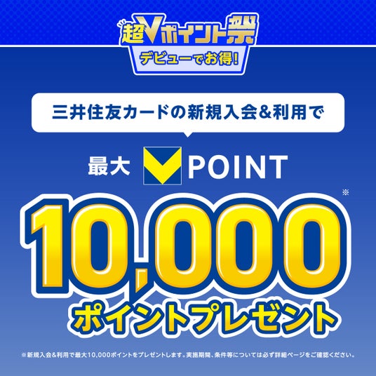 3.【デビューでお得!】三井住友カードの新規入会&利用条件達成で最大Vポイント10,000ptをプレゼント!キャンペーン期間中に三井住友カードに入会するとVポイントが最大3,000ptもらえ、さらに三井住友カードでお支払いいただくと最大7,000ptがもらえます。