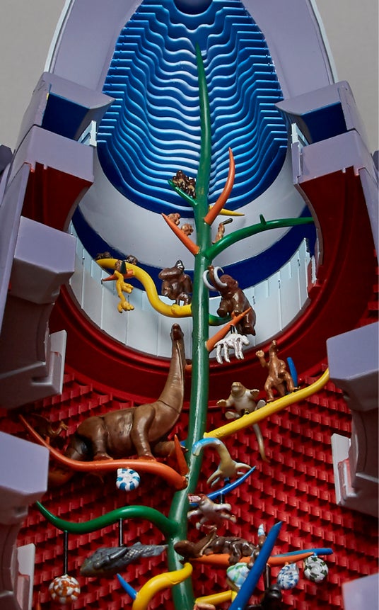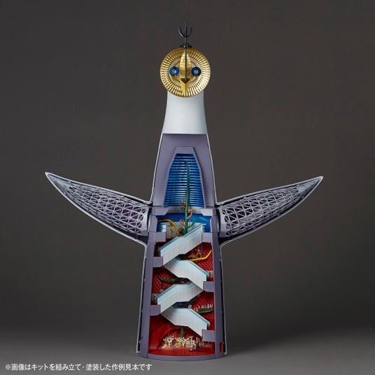 日本万国博覧会EXPO’70(通称・大阪万博)のシンボルとして誕生し、今なお芝生の広場にただひとり両腕を広げそびえ立つ「神像」とも言える存在「太陽の塔」。その内部には太古から現代までの生物たちがひしめき合う「生命の樹」が設置されており、両腕内部は複雑なトラス構造で構築されています。岡本太郎の傑作アート作品にして、人類史上類を見ないモニュメントを、建造から50数年を経た現在の姿で立体化しています。岡本太郎が生み出したアート作品と建築物が融合した唯一無二の存在を、様々な角度から観察することのできるプラスチックモデルキットです。組み立ててよし、塗装してよし。オンリーワンの立体解剖図として楽しんでいただけます。