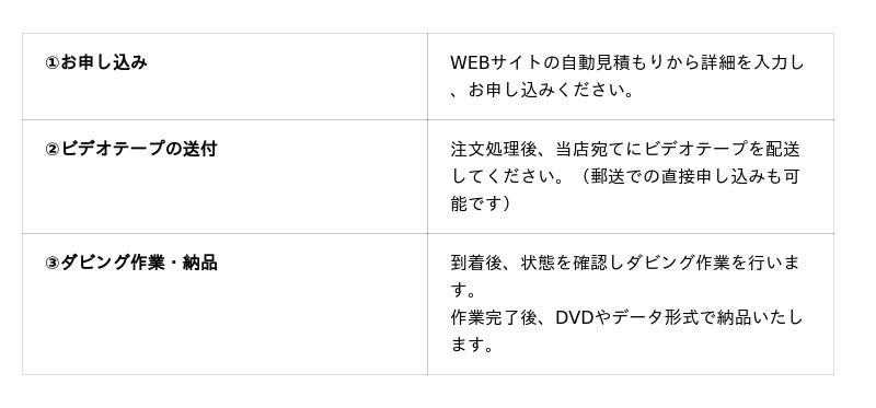 これまで、ビデオテープのダビング業界において、料金は「収録時間の長短」や「テープの劣化状態」によって追加料金が発生するケースが一般的でした。