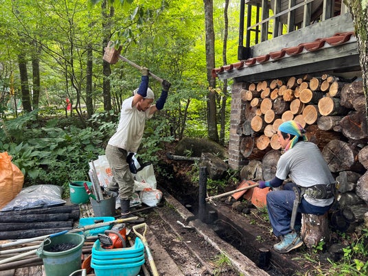 また、枕木下の地面には、土中環境改善を施していく予定です。北杜市在住の環境改善士・井村俊則氏の指導のもと、穴掘り、石・木・炭などの資材運び、木杭打ちなどの作業を行い、その上に枕木を敷きます。土中環境改善を施すことにより、森の水源涵養機能も高める活動となり、自然共生サイトの森として生態系の保全や環境維持にも役立つ取り組みとなります。また、土中環境改善に関心のある方にとっては、現場で学べる貴重な機会にもなります。