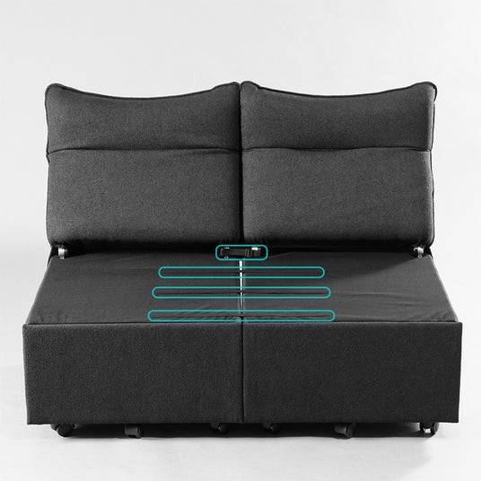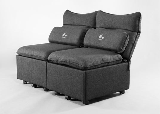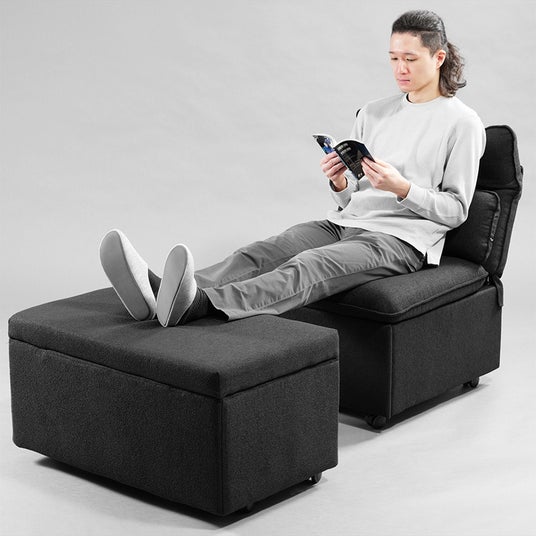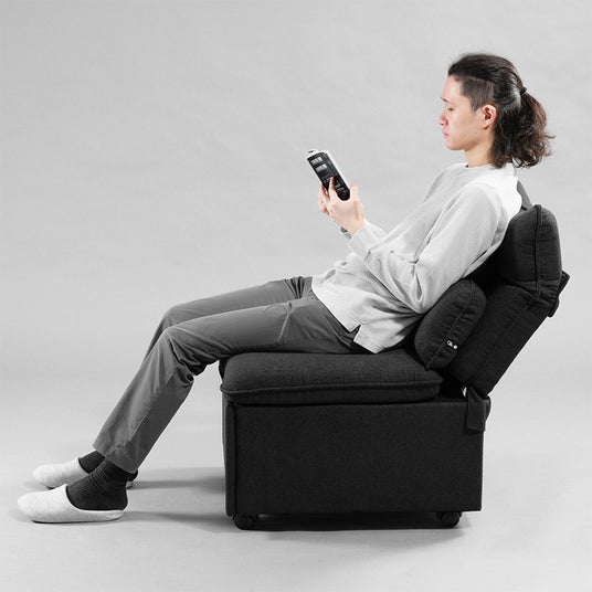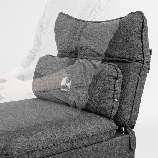 さらに、本製品同士を横に繋ぎ合わせる連結機能を搭載。面ファスナーとベルトで固定するだけの工具不要仕様により、柔軟なレイアウト変更に対応します。普段は単体で使用し、休日は2つ並べて広々としたリビングソファへ瞬時に拡張するなど、環境や気分の変化に寄り添う、拡張性と機動力を備えた設計です。