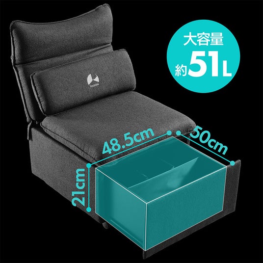約51Lの大容量ストレージ付きソファ。内緒のグッズをこっそり隠せる秘密のゾーンも完備