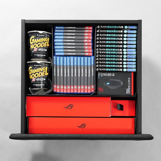 一度座ったら、もう一歩も動きたくない。お菓子やマンガ、交換用のデバイス類など、「今すぐ欲しいけれど、立ち上がるのは面倒くさい」と感じるアイテムはゲーマーの周囲に案外多いものです。すべて手の届く範囲に配備したくても、デスクの上に並べれば瞬く間に大渋滞。肝心のプレイエリアすら物で圧迫されてしまいます。