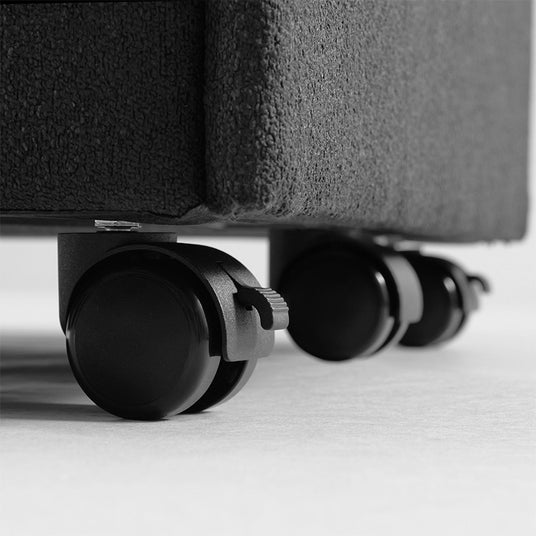 底面にはロック付きキャスターを装備しました。「一度設置したら、基本的にその場所から動かせない」というソファの欠点をカバー。移動に便利なキャスター付きで、デスク以外の場所にも自由に取り回しが可能です。