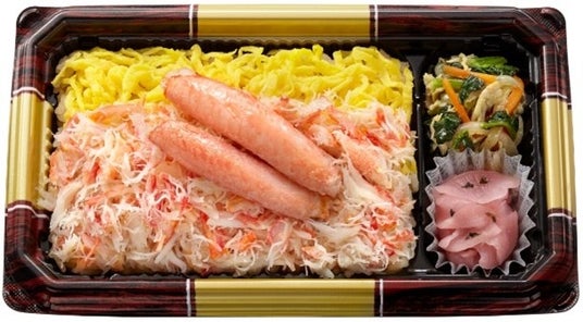 今回はより一層“かに”のおいしさを楽しんでいただけるよう素材にこだわり、二種のかにを使用。ほんのり醤油で仕立てたご飯に、“かにの女王”といわれる本ずわいがにを、ほぐし身にして敷き詰めます。上には食感を楽しんでいただける棒肉をのせていますが、かに風味の蒲鉾ではなく、本格感にこだわり、まるずわいがにの棒肉を使用しました。電子レンジで温めるとふわっと香り立ち、二種のかにがおいしさを競い合うような一品。かにの旨みが重なり合う“本格かにめし”を手軽にお楽しみいただけます。