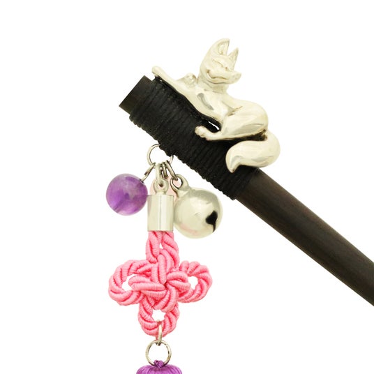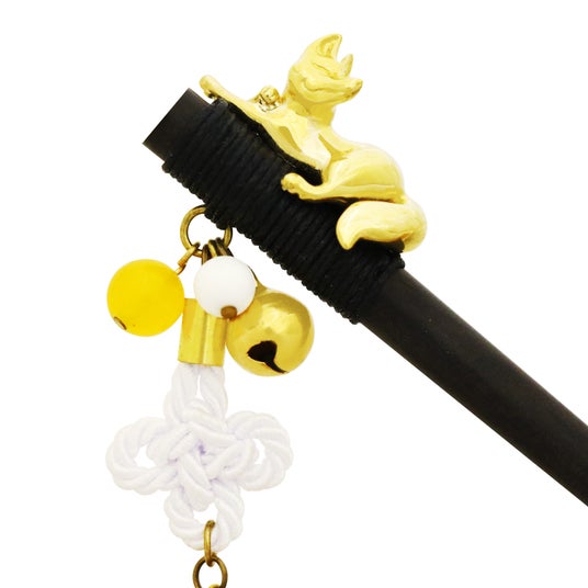 京都のシンボル・伏見稲荷を彷彿とさせる狐と、魔除けの意を持つ伝統的な「総角(あげまき)結び」を組み合わせた「木登狐一本簪」に、待望の京都店舗限定色が仲間入りしました。