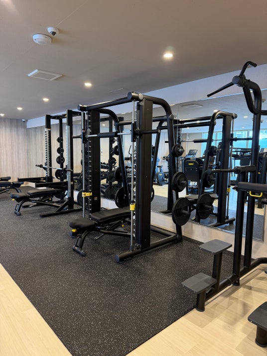 ジムエリアは24時間利用可能で、ランニングマシンや各種トレーニングマシンを完備しています。