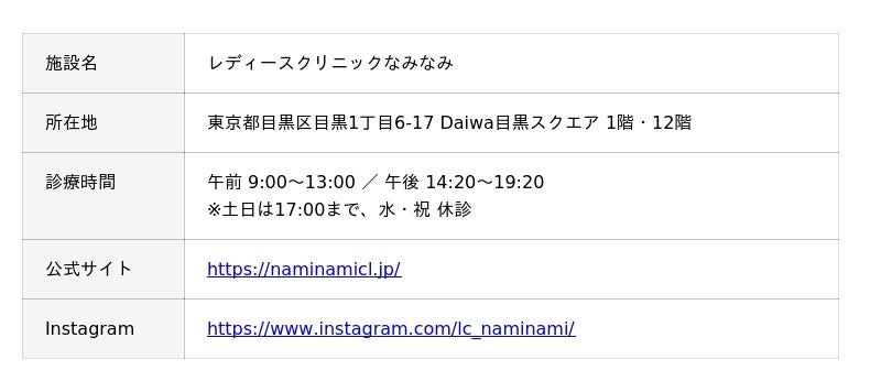 【施設概要】レディースクリニックなみなみ
