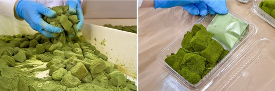 さらにアーモンドプードルをふんだんに配合することで、生地の中に贅沢な水分量を保ち、“ぎゅっ”と密度の高い、食べ応えのある食感に。アーモンドの芳醇な香りと、圧倒的なバターの存在感が、主役である抹茶の旨みをどっしりと支え、格別の深みへと導きました。
