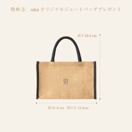特典2. セットをご購入の方に、ukaオリジナルジュートバッグをプレゼント(ギフトボックスがぴったり入るサイズ!)