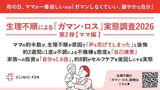 自身の不調が家庭全体の幸福度に影響している傾向に気づきにくい現状を背景に、クリニックフォアでは、自身の「ガマン・ロス」を可視化し適切なケアを検討するきっかけを提供する「生理不順のガマン・ロス度診断」の提供を開始しています。