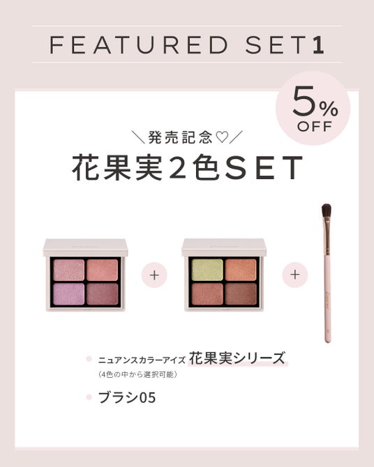 – 心ゆくまで試せるフルラインナップ :新作アイシャドウ「花果実シリーズ」はもちろん、普段はオンライン限定展開のメイクブラシを含む”全商品”を一挙にお試し・ご購入いただけます 。