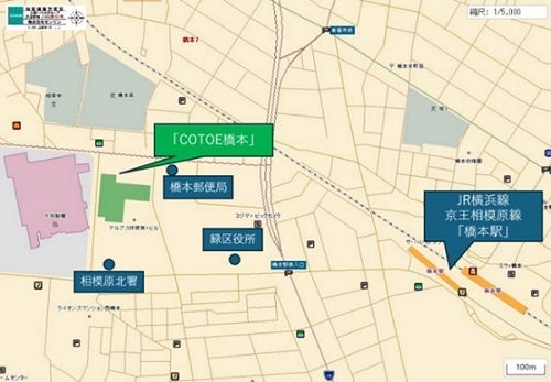 本施設は、JR横浜線、京王電鉄相模原線「橋本駅」から徒歩約13分、国道16号線に近いことや首都圏中央連絡自動車道「相模原インターチェンジ」から約4kmの場所に位置しているため、近隣住民の方はもちろん、広域からの利用も見込まれます。