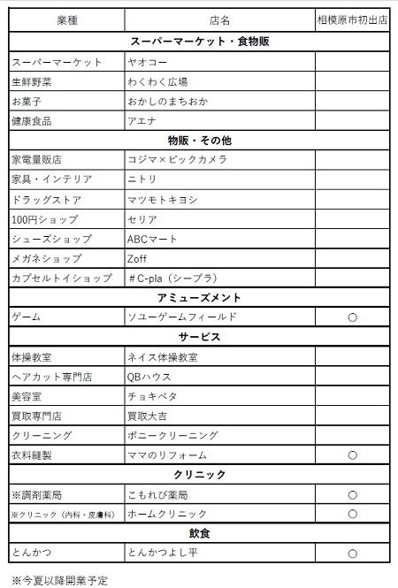 ドラッグストアや100円ショップ、シューズショップなどの物販店舗やクリニック(※1)、調剤薬局(※1)、美容室、体操教室、飲食店などが出店します。