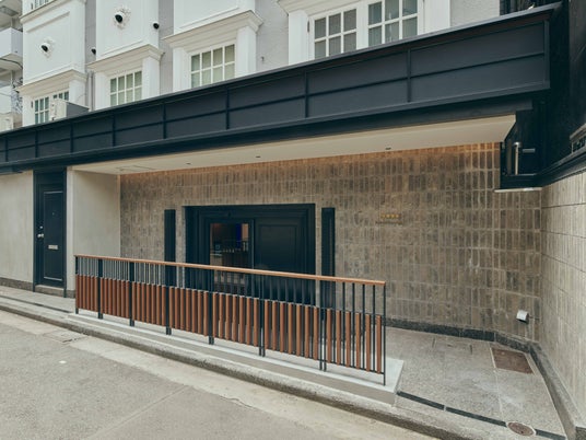 もともとの建物が持っていたクラシックな意匠を活かしながら、シンプルでシックな石タイルを重ねました。渋谷の街並みに馴染みながらも、どこか少し背筋が伸びるような、洗練された佇まいでお迎えします。