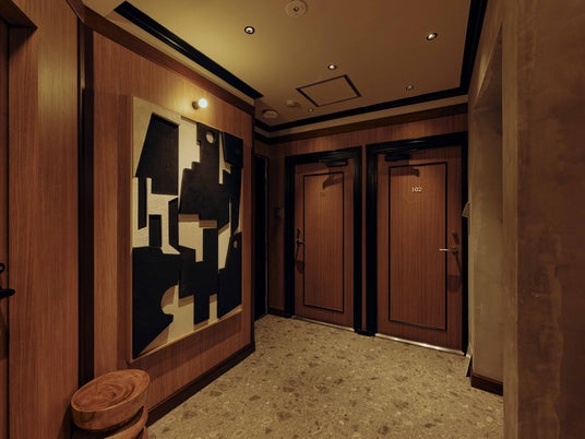 エントランスを抜けると、都会の喧騒がふっと遠のいていくのを感じるはず。外の賑やかさを微かに残しながらも、木目を基調とした素材が、静穏な安らぎの場所へと優しく導きます。