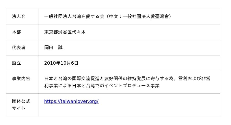 一般社団法人台湾を愛する会、台湾フェスティバル(TM)実行委員会