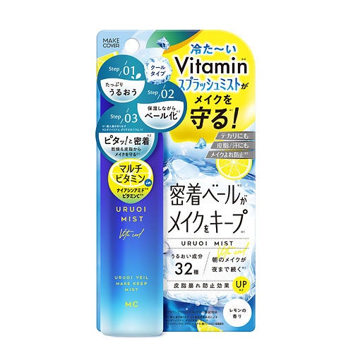 【新商品】 メイクカバー うるおいミスト VITAクール 65g 1,430円冷たいミストでメイクを守るメイクキープスプレー。メイクの上から冷たいスプレーを吹き付け、ビタミン※1スプラッシュミストがメイクを守ります。