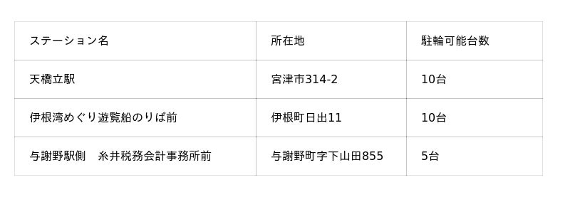 宮津市内のステーション設置場所は、こちらをご確認ください。