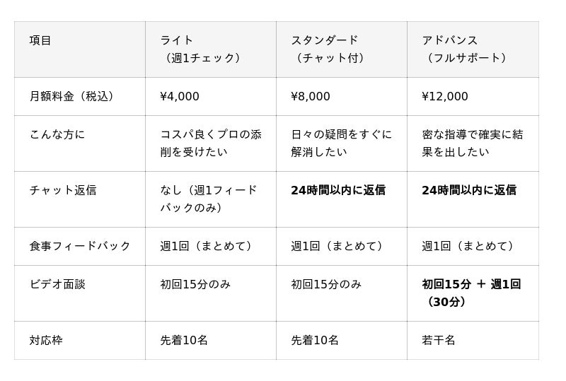 – 先行予約フォーム:公認スポーツ栄養士による個別食事サポート「カロサポ・プレミアム」先行予約を受付中