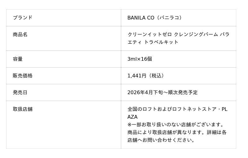 「BANILA CO」は全国のロフト・PLAZAにて、新商品「クリーンイットゼロ クレンジングバーム バラエティ トラベルキット」を販売開始します。