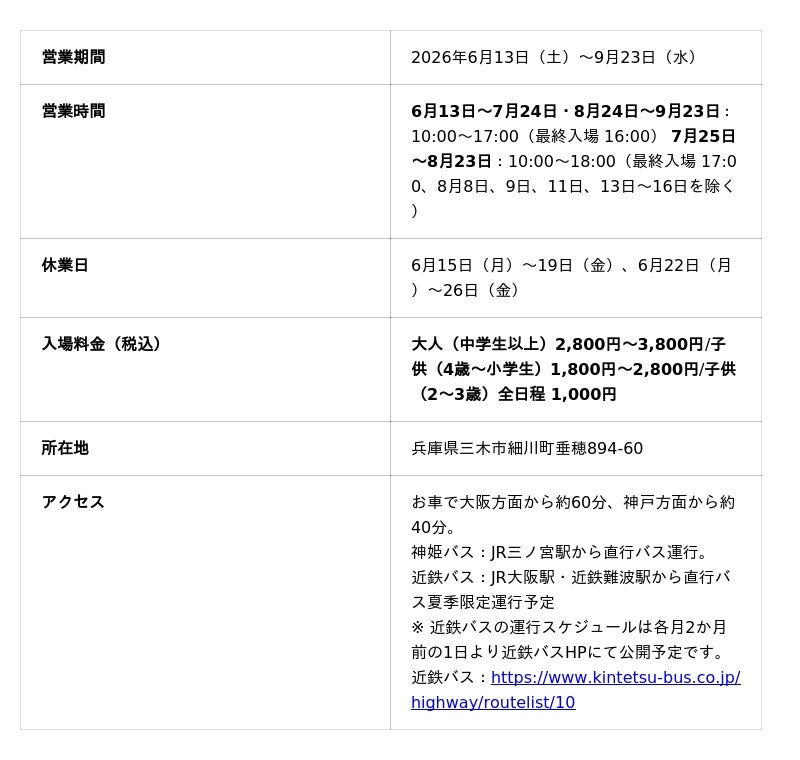 株式会社ネスタリゾート神戸(所在地:兵庫県三木市、代表取締役社長:田中 淳)が運営する大自然の冒険テーマパーク「ネスタリゾート神戸」は、敷地面積22,000平方メートル を誇る広大なプール施設「ウォーターフォート」を2026年6月13日(土)から9月23日(水)の期間、オープンいたします。ネスタリゾート神戸史上、最速のプール開きとなります。